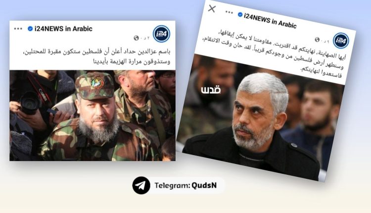 اخترق مجهولون، اليوم الثلاثاء، الصفحة العربية التابعة للقناة الصهيونية i24NEWS، ونشروا عليها صورًا للقائد الشهيد يحيى السنوار، والقيادي في كتائب القسام عز الدين الحداد، إلى جانب رسائل تهديد موجهة للعدو الصهيوني.