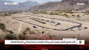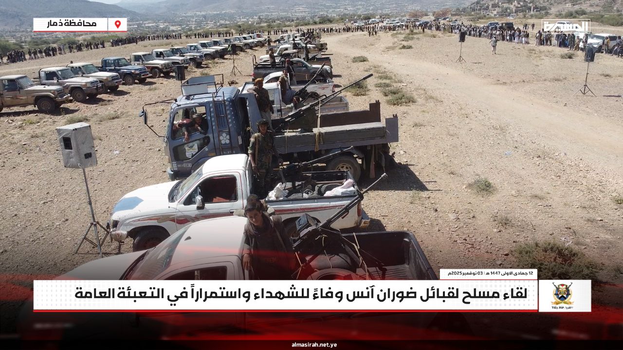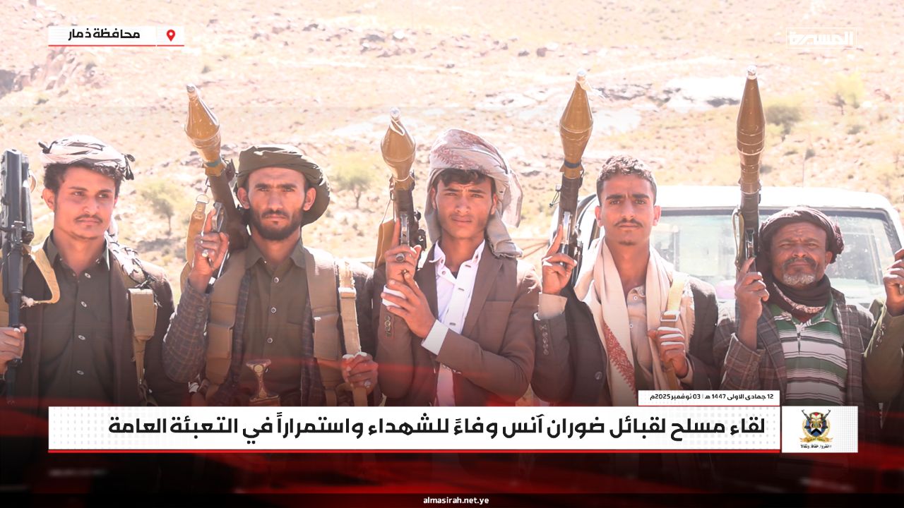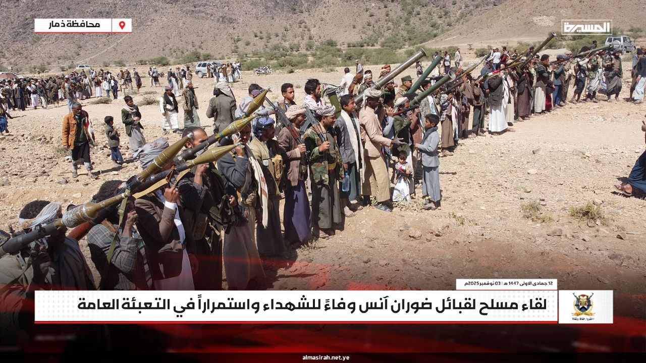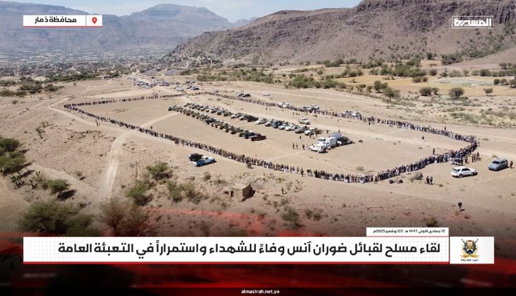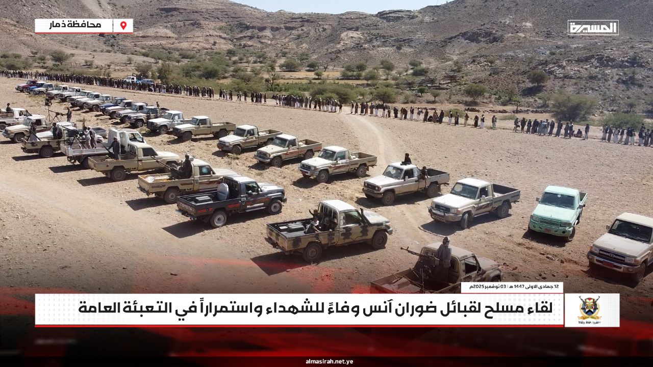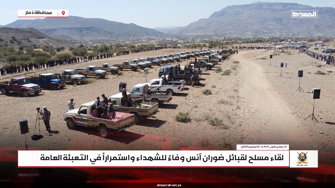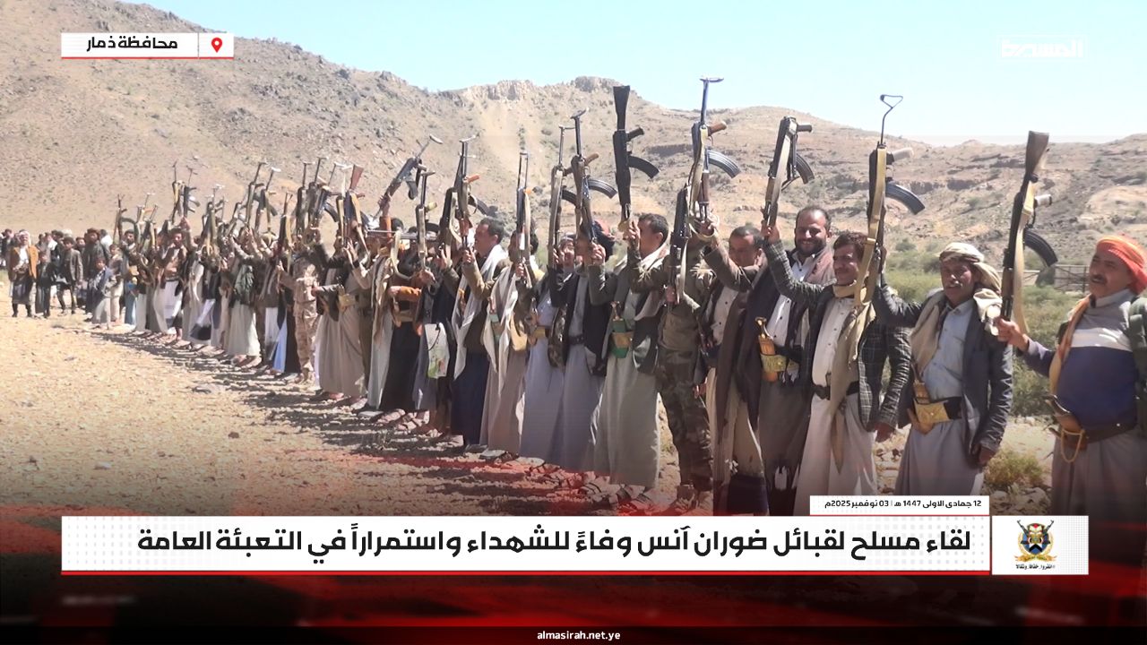 أحتشدت قبائل مديرية ضوران آنس، اليوم، في لقاء قبلي مُسلح حاشد، إعلاناً للنفير العام والجهوزية العالية لمواجهة تهديدات ومخططات الأعداء وفاءً لدماء الشهداء وتأكيد الموقف الثابت مع غزة، تزامناً مع الذكرى السنوية للشهيد 1447هـ.
