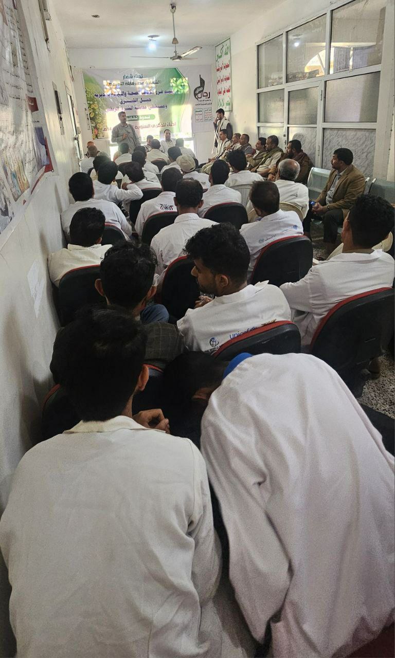 نظم فرع مكتب الصحة ومستشفى مدينة الشرق الريفي منتسبو القطاع بمديرية جبل الشرق بمحافظة ذمار اليوم، فعالية ثقافية بالذكرى السنوية للشهيد تحت شعار “تضحيات الشهداء أثمرت عزاً ونصراً للشعبين اليمني والفلسطيني ” .