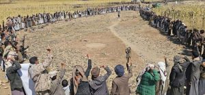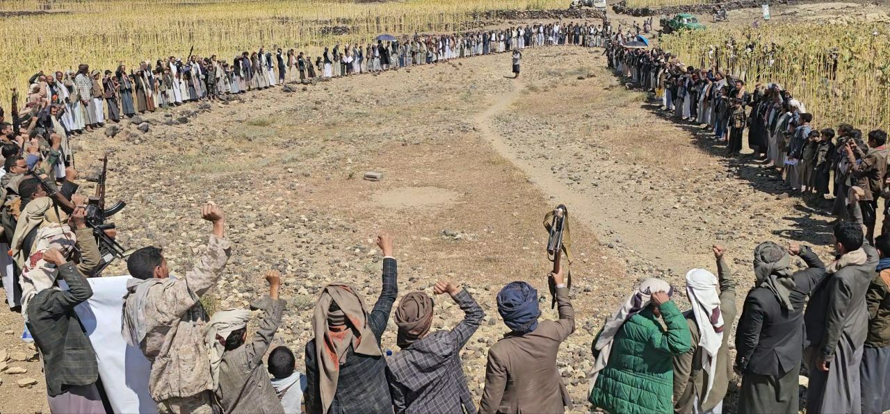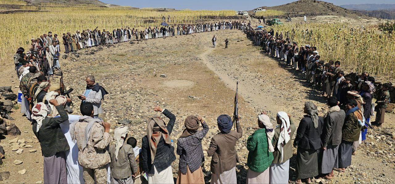 احتشدت قبائل عزلة قمد بمخلاف بني أسعد بمديرية جبل الشرق بمحافظة ذمار اليوم، في وقفة قبلية مُسلحة حاشدة، إعلاناً للنفير العام، والجهوزية العالية لمواجهة تهديدات ومخططات الأعداء، تحت شعار “وفاءً لدماء الشُهداء .. التعبئة مُستمرة والجهوزية عالية” .