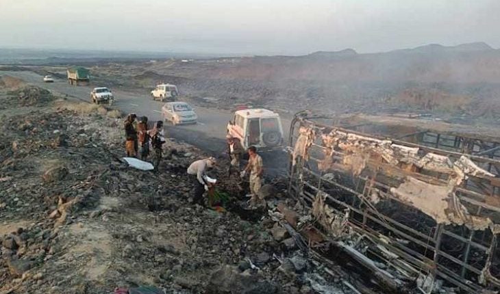 مطالبات شعبية بالتحقيق في احتراق حافلة نقل جماعي في أبين ووفاة أكثر من 30 راكباً