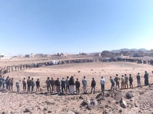 نظم أبناء عزلة عنس السلامه بمديرية ميفعة عنس صباح اليوم وقفة قبلية لتأكيد الموقف المبدئي والأخلاقي والديني مع الشعب الفلسطيني وأبناء الأمة والوفاء لدماء الشهداء تحت شعار «وفاء لدماء الشهداء وثبات على الموقف»