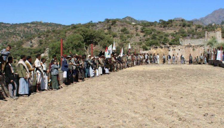 نظم أبناء عزلة العقد السافل بلاد الريمي بمديرية عتمة محافظة ذمار اليوم وقفة قبلية مسلحة إعلاناً للجهوزية وبراءةً من العملاء والخونة.