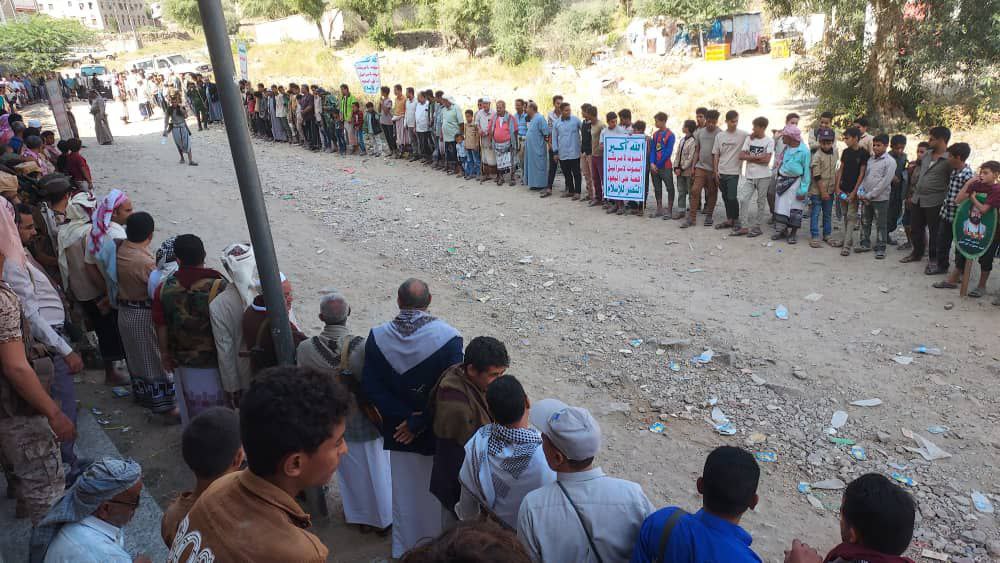 وخلال الوقفة بحضور مدير عام المديرية فؤاد القديمي ورئيس مجلس التلاحم القبلي الشيخ محمد العلوي، جدد المشاركون عهد الولاء والوفاء للقائد العلم السيد عبد الملك بدر الدين الحوثي حفظه الله، والوقوف إلى جانب القوات المسلحة في التصدي لأي عدوان على بلدنا وكل من تسول له نفسه في المساس بأمن واستقرار الوطن.