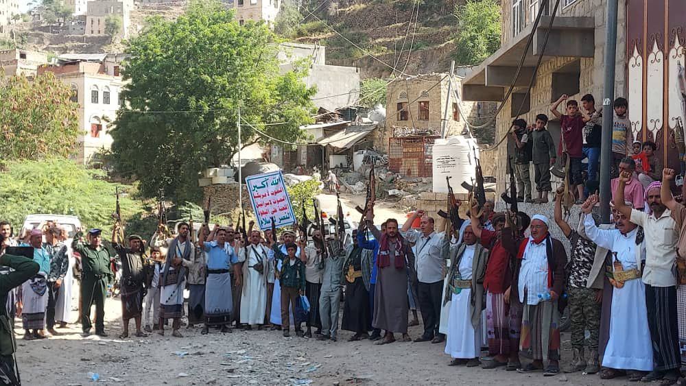 نظم أبناء عزلة بني حطام بمديرية وصاب السافل محافظة ذمار، اليوم، وقفة قبلية مسلحة  اعلانا للنفير العام والجهوزية العالية لمواجهة تهديدات ومخططات الاعداء.