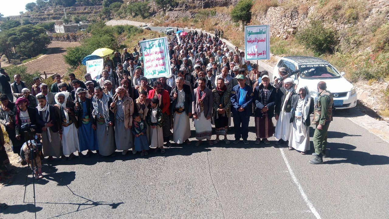 وخلال المسيرتان بحضور عضو مجلس الشورى لطف الجرموزي ومدير عام المديرية علي حسين الكبسي ومسؤول التعبئة العامة حميد الموشكي وقيادات تنفيذية وتعبوية وتربوية وأمنية وصحية ومنتسبي الجمعية التعاونية الزراعية،ومشائخ وشخصيات إجتماعية ردد المشاركون هتافات التأكيد،والثبات والصمود، والمساندة للشعب الفلسطيني والدفاع عن الوطن وتحرير أرضه