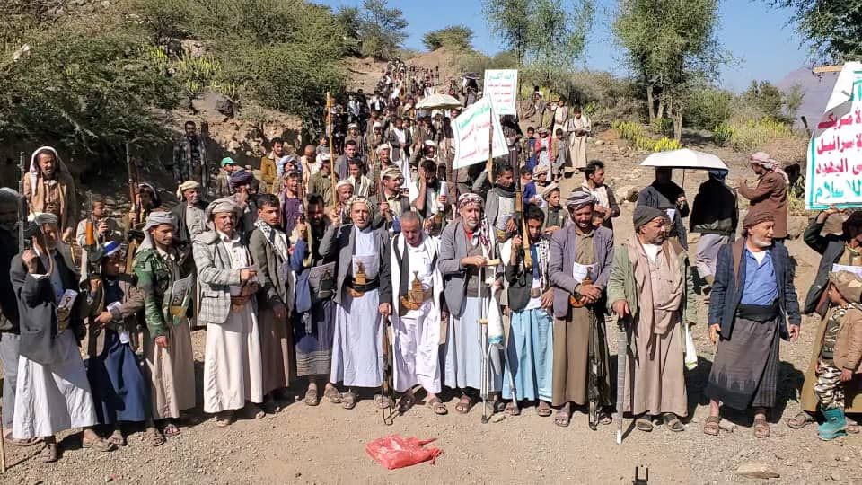 احتشد أبناء مديرية المنار بمحافظة ذمار اليوم في ست مسيرات جماهيرية تحت شعار “التحرير خيارنا .. والمحتل إلى زوال”، تأكيدًا على التمسك بنهج الجهاد والتضحية في سبيل التحرر والاستقلال ومواجهة الأعداء ومخططاتهم.