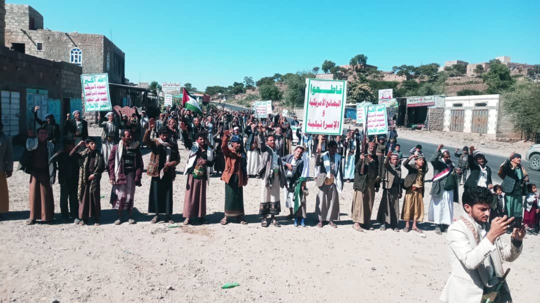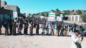 ورددّ المشاركون في المسيرات التي شهدتها ساحات مركز المديرية، ومخلاف المنار، والمعينة، والصافية، وبني سلامة، والصيد ، شعارات مؤكدة على ثبات الموقف المساند لغزة وكل فلسطين والداعم لقضية الأمة المركزية “فلسطين”.