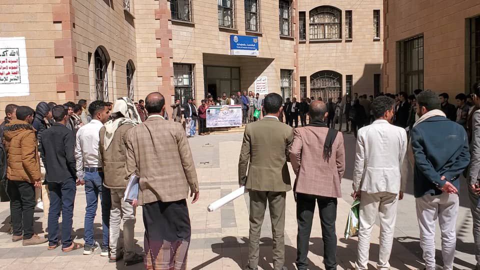 أقام طلاب وأكاديميو كلية الحاسبات والمعلوماتية بجامعة ذمار، اليوم، وقفة تضامنية بعنوان “التحرير خيارنا… والمحتل إلى زوال”.