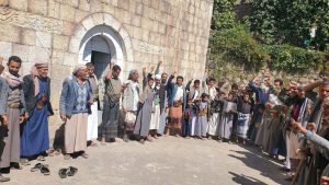 نظم أبناء مديرية مغرب عنس محافظة ذمار عقب صلاة الجمعة اليوم وقفات لمساندة الشعب الفلسطيني ومقاومته الباسلة تحت شعار «ود الذين كفروا لو تغفلون عن أسلحتكم وأمتعتكم فيميلون عليكم ميلة” واحدة»