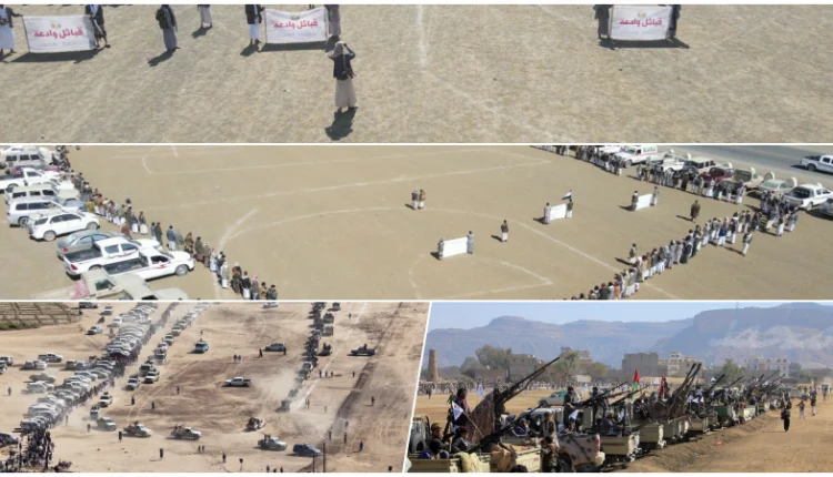 وفي محافظة عمران خرجت قبائل مديرية بكيل السواد في “نكف مسلح حاشد”، حيث استعرضت عتادها ورجالها، مؤكدة جاهزيتها الكاملة لمواجهة أي مستجدات مقبلة.
