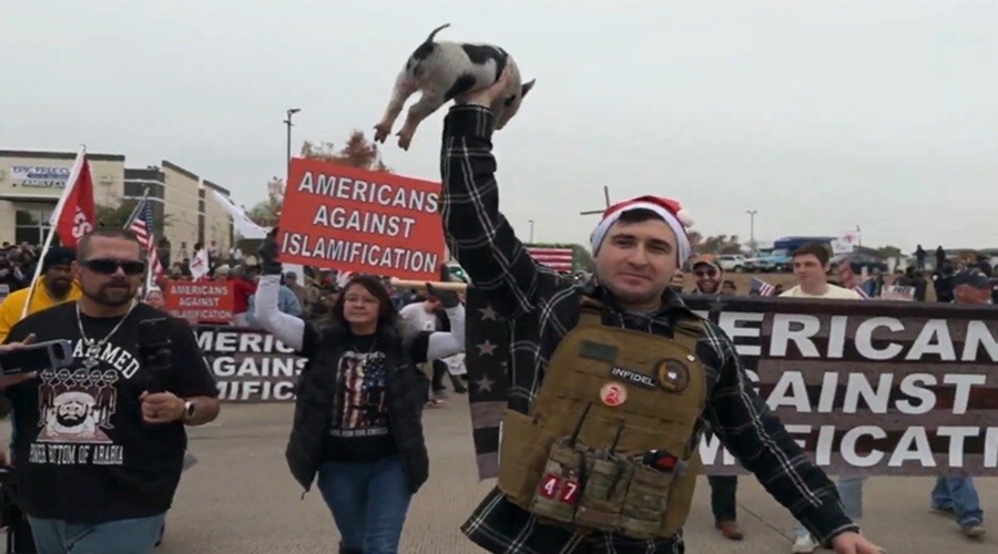 في إساءةٍ جديدةٍ لأقدس المقدسات الإسلامية وآخر الكتب السماوية، أقدّم المدعو “جيك لانغ” المرشح عن الحزب الجمهوري لمقعد مجلس الشيوخ في ولاية “فلوريدا” على وضع نسخة من المصحف الشريف في فمِ خنزير، خلال تظاهرةٍ معادية للإسلام بمدينة “بلانو” في مقاطعة “كولين” بولاية “تكساس” الأمريكية.
