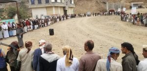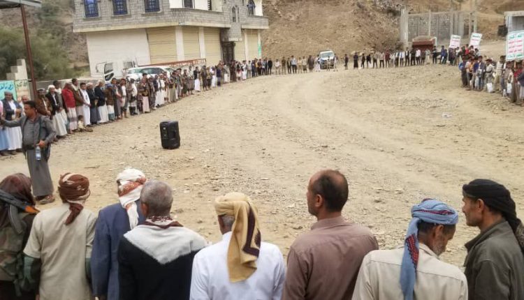 شهدت عزل بيت الحي وبني العزب وبني الشماخ بمديرية وصاب السافل، اليوم، وقفة قبليةحاشدة  تأكيداً على النفير العام.