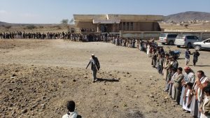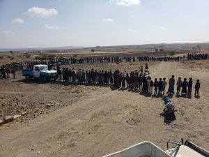 نظم أبناء عزلة شارح وبني خضير بمديرية ضوران اليوم، وقفة احتجاجية تنديداً بالإساءة الأمريكية المتكررة للقرآن الكريم.