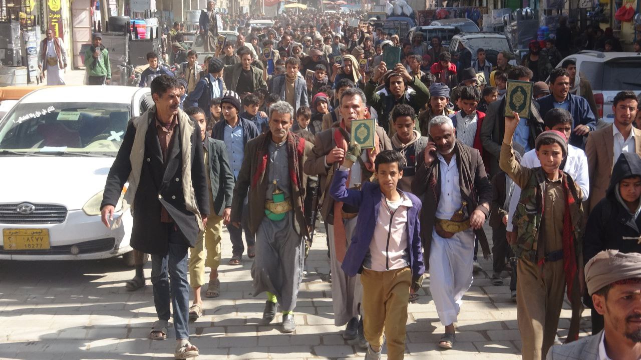 وخلال المسيرة بمشاركة منتسبي القطاع التربوي، ردد المشاركون الهتافات المعبرة عن التمسك بكتاب الله، ورفض أي إساءة تطال قدسية القرآن الكريم.