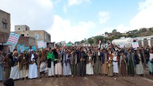 ورفع المشاركون في المسيرات بساحات مركز المديرية، ومخلاف المنار، والمعينة، والصافية، ومخلاف بني سلامة، والصيد، المصاحف الشريفة، مرددين هتافات الغضب والإدانة والاستنكار للإساءات الأمريكية المتكررة للقرآن الكريم، وللصمت الدولي والعربي والإسلامي المخزي تجاه هذه الجرائم العدوانية التي تستهدف أقدس مقدسات الأمة.