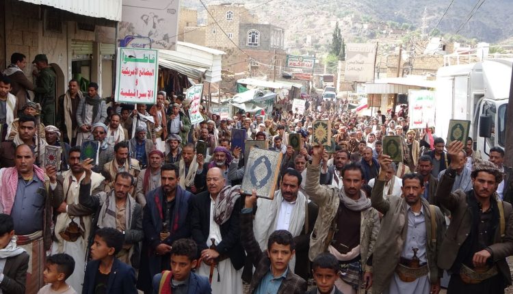 وأكد بيان صادر عن المسيرات الاعتصام بحبل الله المتين، والتمسك بكتاب الله العظيم مصدر العزة والكرامة وسبيل النجاة في الدنيا والآخرة، معلنًا الرفض القاطع لأي إساءة أو استهداف للقرآن الكريم، ومحمّلًا الولايات المتحدة الأمريكية ومعها بريطانيا والعدو الصهيوني المسؤولية الكاملة عن هذه الإساءات المتكررة التي تعكس حقدهم وعداءهم الصريح للإسلام والمسلمين.