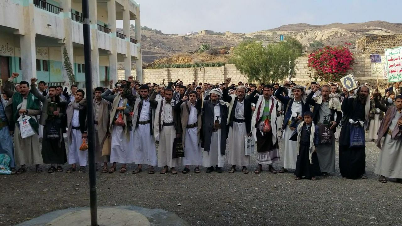 خرج أبناء مديرية جبل الشرق بمحافظة ذمار اليوم ، في عشر مسيرات جماهيرية حاشدة ، تحت شعار “نفير واستنفار ٠٠ نُصرةً للقُرآن وفلسطين”.