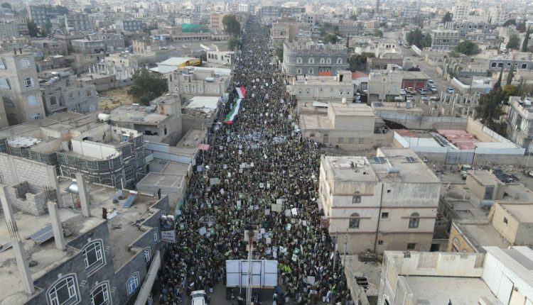 خروج جماهيري مهيب بذمار في مسيرة “النفير والأستنفار.. نصرة للقرآن وفلسطين”