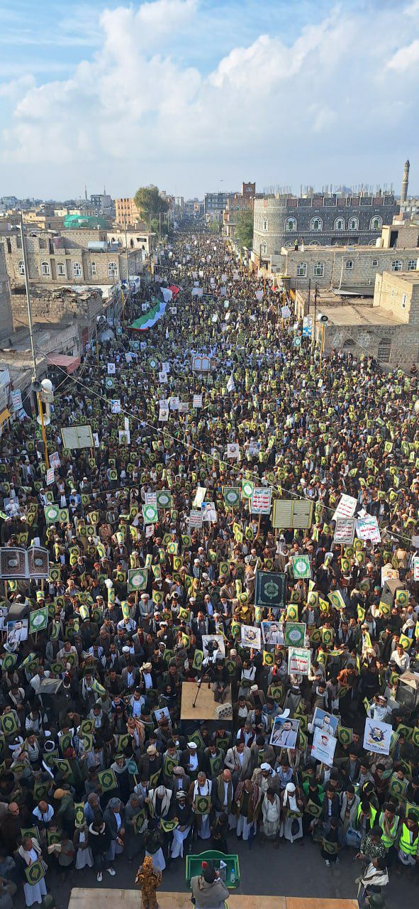 ودعا بيانُ صادر عن المسيرة شعوبَ الأمة الإسلامية إلى اتخاذ مواقف عملية تجاه الإساءات المتصاعدة وفي مقدمتها مقاطعة البضائع الأمريكية والإسرائيلية باعتبارها خطوةً أخلاقيةً ودينيةً تسهم في رفع الظلم عن الأمة وتمنع دعم الأنظمة التي تسيء إلى مقدساتها.