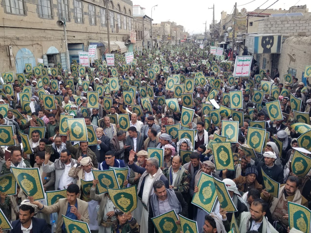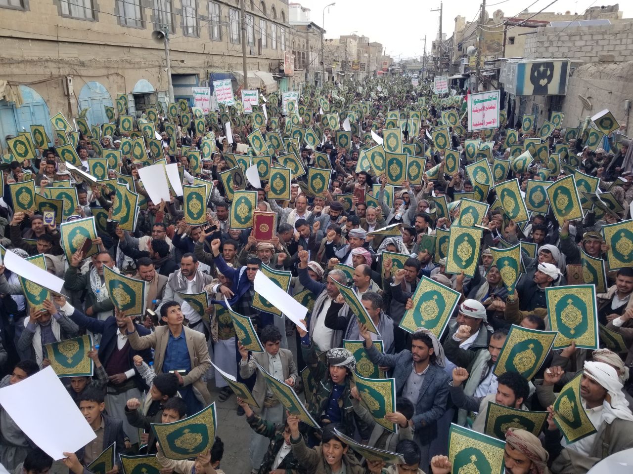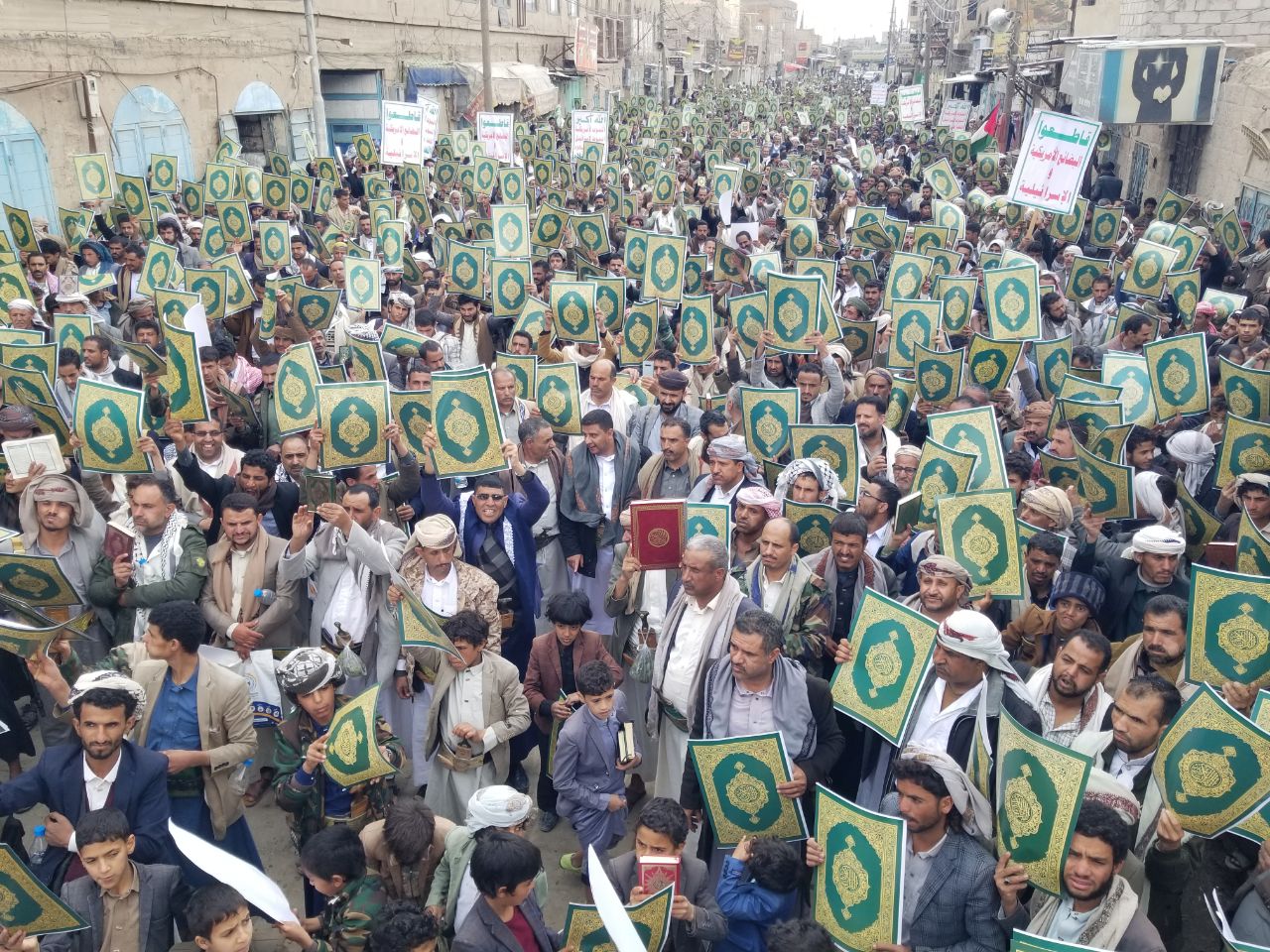 ورفع المشاركون في المسيرتين بمدينة معبر ومربع صنعه، المصحف الكريم تعظيما وتقديسا وإجلالا لكتاب الله، ورددوا الهتافات الغاضبة والمنددة بالإساءات الصهيونية الأمريكية المتكررة للقرآن والمقدسات الإسلامية.