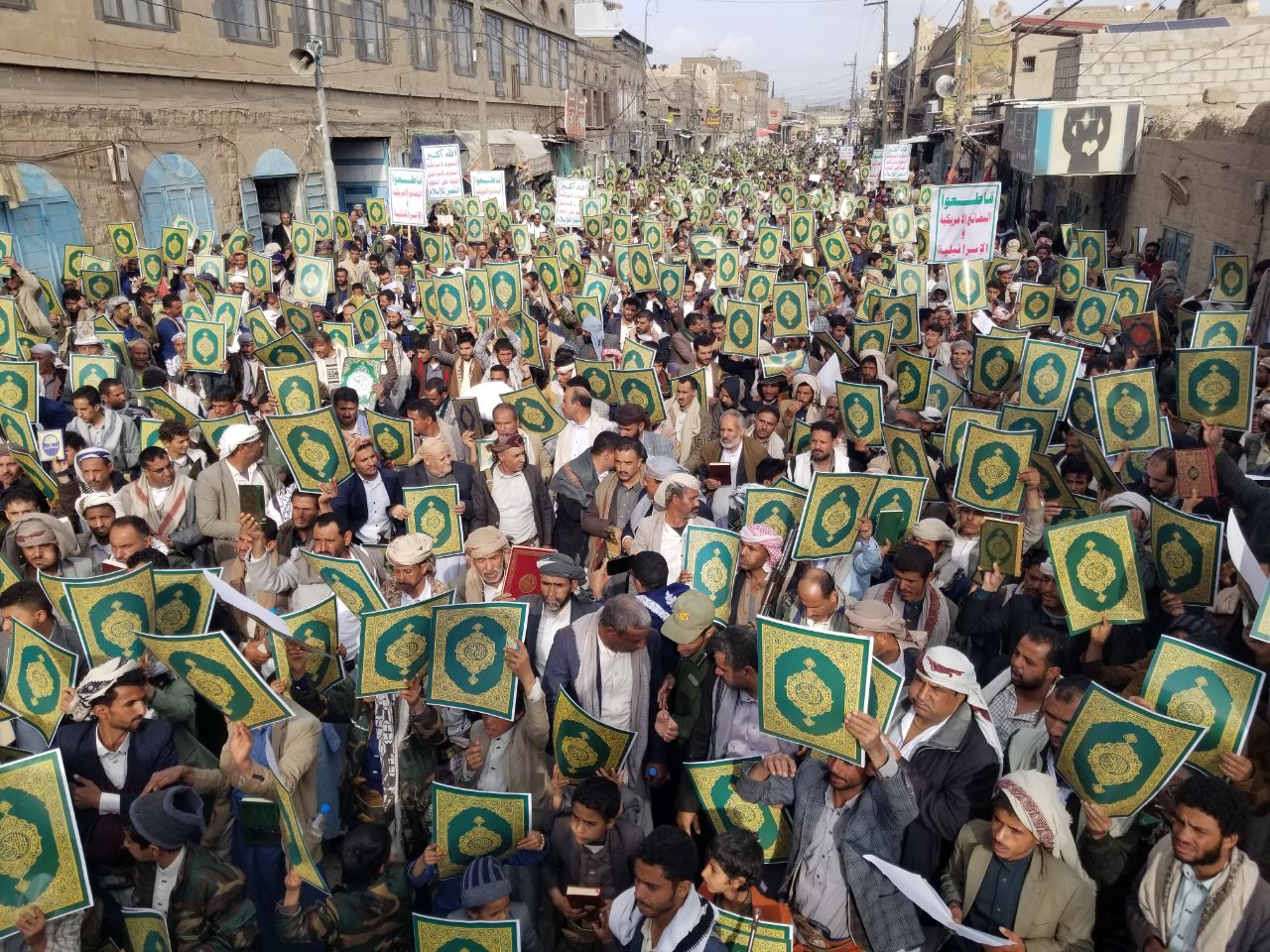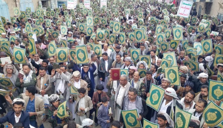 وعبر المشاركون عن الغضب الشعبي من الإساءة للقرآن الكريم، والتأكيد على الالتزام بنصرته، والوقوف إلى جانب القضية الفلسطينية، وربط الموقف من المقدسات بمعركة الأمة مع المشروع الأمريكي الصهيوني.