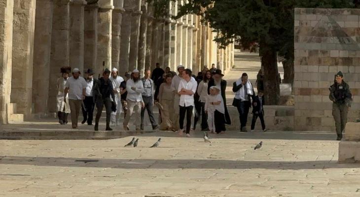 وأفادت مصادر مقدسية، بأن 59 مغتصبا و150 طالبا يهوديا، بالإضافة لـ 62 عنصرًا من شرطة العدو اقتحموا ساحات المسجد الأقصى صباح اليوم.