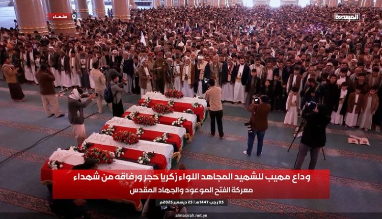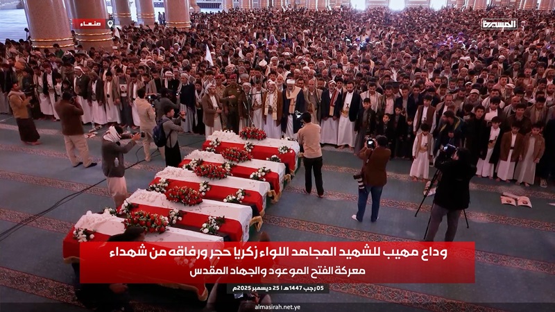 في يومٍ مشهود، ودّعت العاصمة صنعاء كوكبةً من الشهداء العظام الذين ارتقوا في الصفوف المتقدمة خلال معركة الفتح الموعود والجهاد المقدس، في موكب تشييع مهيب عكس عظمة التضحيات وصدق الانتماء.