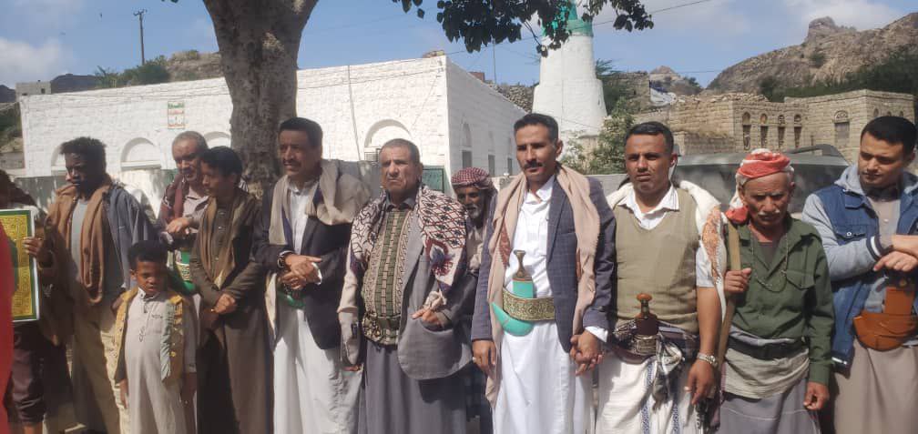 وخلال الوقفات بحضور القيادات التنفيذية والتعبوية والامنية والتربوية والصحية والشبابية ومجالس محلية ومشائخ وشخصيات اجتماعية رفع المشاركون كتاب الله القرآن الكريم، ورددوا الهتافات الفرائحية بحلول أول جمعة من رجب.