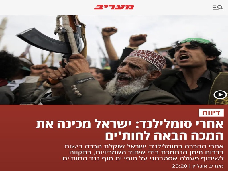 وأشارت القناة العبرية إلى ما تطرق اليه السيد القائد بشأن عدم قبول اليمن بأن تنتهك سيادة الصومال الشقيق، وأن أي وجود عسكري أو استخباري صهيوني على الأراضي الصومالية يعتبر “هدفاً عسكرياً مشروعاً” للقوات المسلحة اليمنية، باعتبار التواجد الصهيوني يشكل تهديداً أمنياً مباشراً لليمن ولمنطقة القرن الأفريقي برمتها، ولن يتم السماح بتمريره.