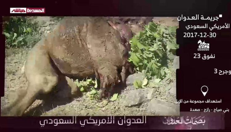 وفي مديرية رازح كانت الأبل ترعى في منطقة بني صياح ومالكها يراقبها عن كثب، وفي لحظة يحلق طيران العدوان فوق سماء المنطقة، ويراقب أي حركة تدب عن استمرار الحياة ليغتالها، فما كان أمامه سوى جموع من الأبل التي أرعبته، وخيلت له أنها أهداف عسكرية، يمكن له من خلال استهدافها تقديم صورة دعائية زائفة، عن استهداف مخازن سلاح، ومساكن قيادات، فيما الحقيقة غير ذلك تماماً، وتكون الأبل وصاحبها الضحية، والخاسر الأكبر.