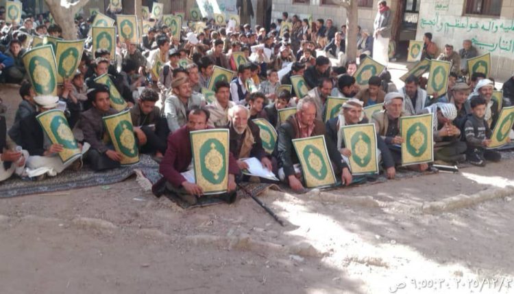 نظم أبناء عزلة بيت الحجي والجبري ومعبرة بمديرية مغرب عنس محافظة ذمار صباح اليوم فعالية ثقافية احتفاء” بذكرى مناسبة جمعة رجب مناسبة دخول اليمنيين الإسلام تحت شعار «الإيمان يمان والحكمة يمانية»