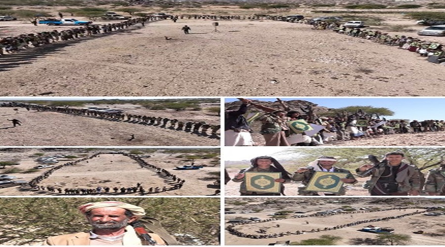 خرج مشايخ ووجهاء وأبناء قبائل مديرية الشرية بمحافظة البيضاء، اليوم، في وقفة قبلية مسلحة حاشدة، وغاضبة، تجديداً للنفير العام، وتأكيدًا على الجهوزية العالية والاستعداد الكامل لخوض جولة الصراع القادمة ضد الأعداء، وتأييدًا لكافة قرارات السيد القائد عبد الملك بدرالدين الحوثي _ يحفظه الله_ في مواجهة مؤامرة العدو الإسرائيلي بالصومال، وتوسيع مشروع الاستباحة في المنطقة.