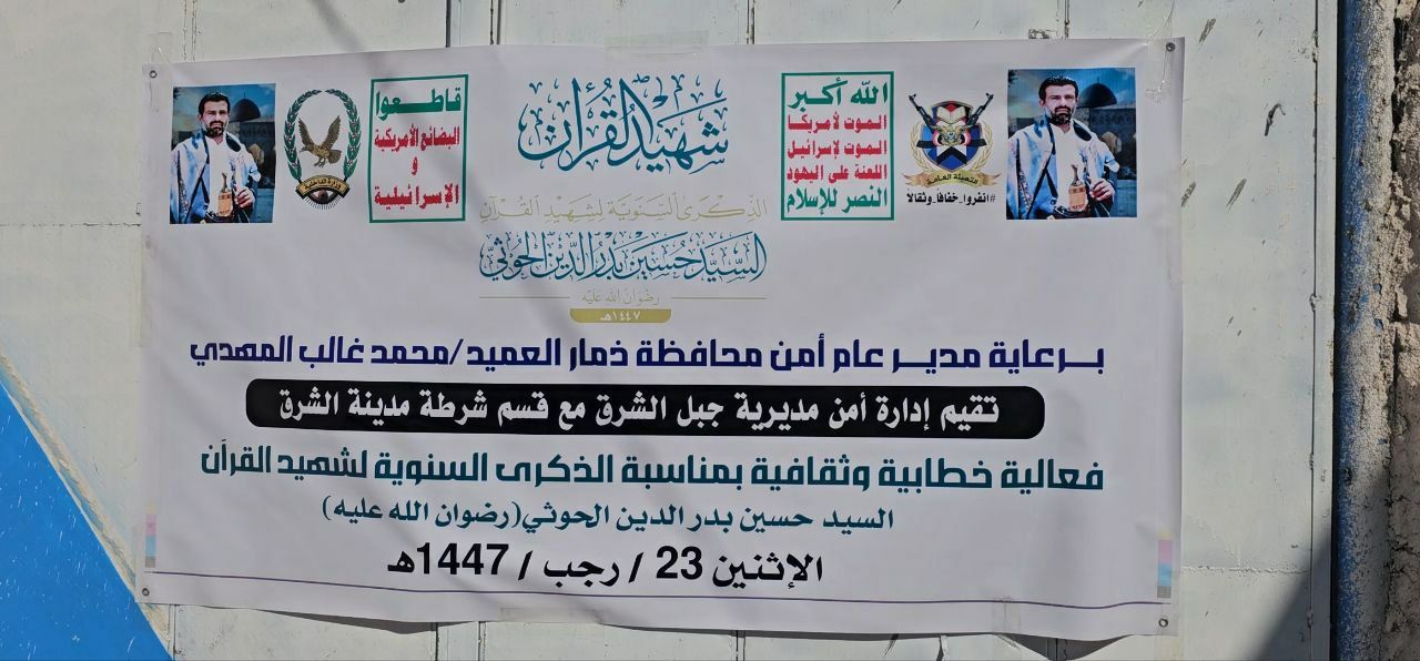 أحيت إدارة أمن مديرية جبل الشرق وقسم شرطة مدينة الشرق بمحافظة ذمار اليوم، الذكرى السنوية للشهيد القائد السيد حسين بدر الدين الحوثي بفعالية ثقافية خطابية حاشدة تحت شعار “ماضون على خُطى الشهيد القائد”.