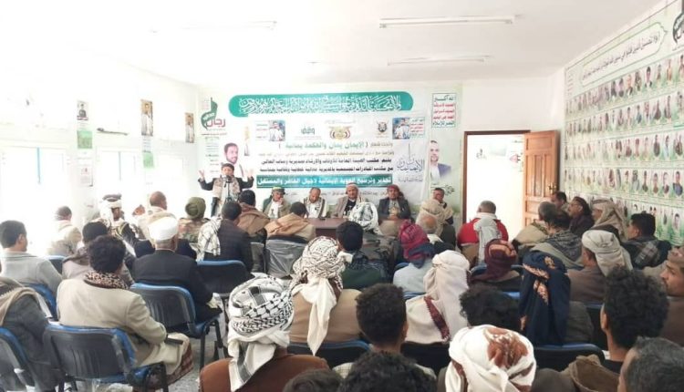 نظم فرع مكتب الهيئة العامة للأوقاف والإرشاد والمبادرات المجتمعية بمديرية وصاب العالي محافظة ذمار صباح اليوم فعالية ثقافية وخطابية بمناسبة الذكرى السنوية لاستشهاد شهيد القران الشهيد القائد السيد حسين بدر الدين الحوثي رضوان الله علية تحت شعار ((الايمان يمان والحكمة يمانية )).