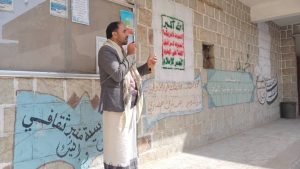 نظمت مدرسة أبو موسى الأشعري بمديرية وصاب السافل محافظة ذمار، اليوم، فعالية خطابية اختتاما لفعاليات إحياء ذكرى سنوية الشهيد القائد السيد حُسين بدرالدين الحوثي، رضوان الله عليه، تحت شعار “إنّ من أعظم نكبات الأُمة أن تفقد عظماؤها” .