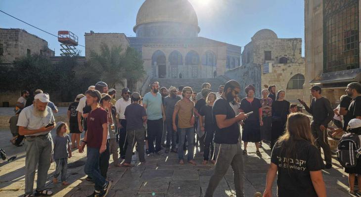 وأدوا طقوسا استفزازية وأغاني .. عشرات الصهاينة يدنسون باحات الأقصى الشريف