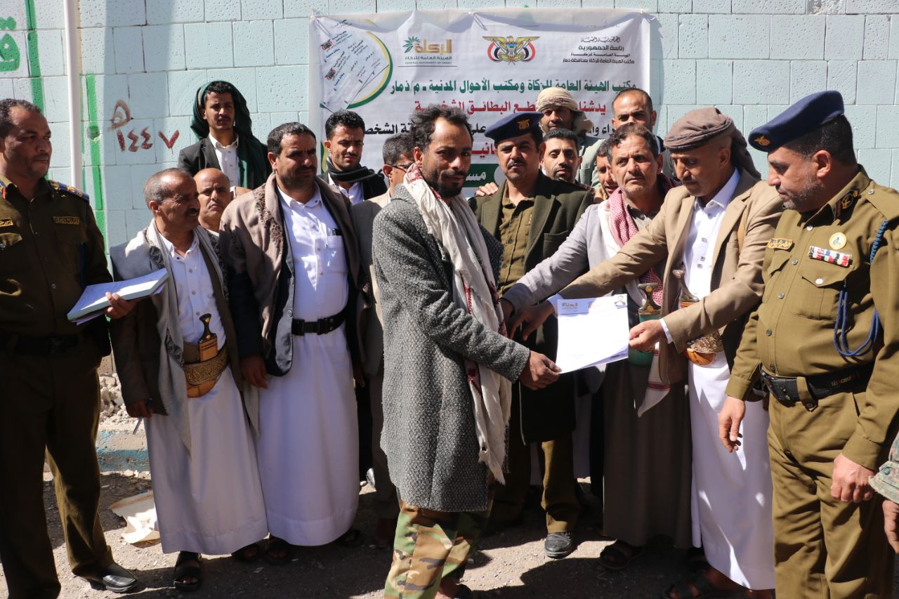 دشن مكتب الهيئة العامة للزكاة وفرع مصلحة الأموال المدنية بمحافظة ذمار، اليوم، مشروع إصدار البطاقة الشخصية الإلكترونية (المرحلة الثانية) لعدد 13 ألف و781 شخصاً من الفقراء والمساكين المستفيدين من هيئة الزكاة للعام 2026م.