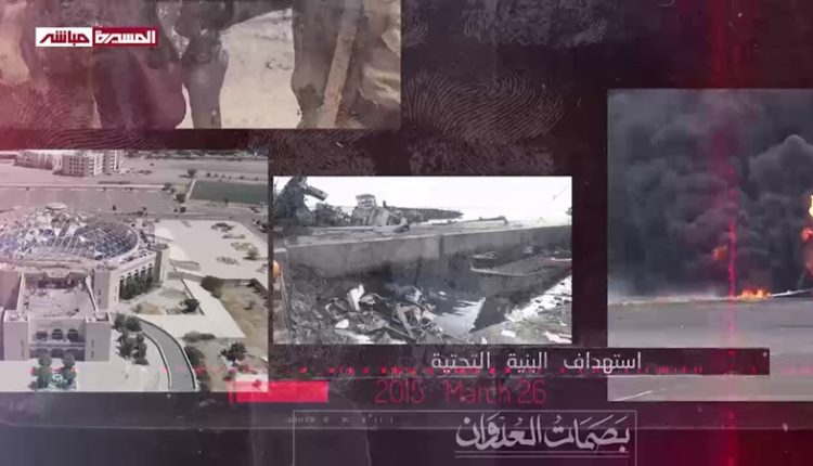 على منازل ومزارع وممتلكات المواطنين والمدارس والأسواق والجوامع والمنشآت الخدمية، والأعيان المدنية، في مناطق متفرقة بعدة محافظات يمنية.