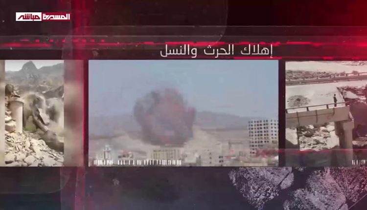 وفي جريمة حرب ثانبة بذات المحافظة، استهدف طيران العدوان منازل المواطن دغسان في قرية صبر بمديرية سحار، أسفرت عن دمارها بشكل شبه كلي، وأضرار واسعة في منازل وممتلكات ومزارع المواطنين المجاورة، ونزوح عشرات الأسر منها، في جريمة صادمة، واستهداف متعمد للأعيان المدنية.