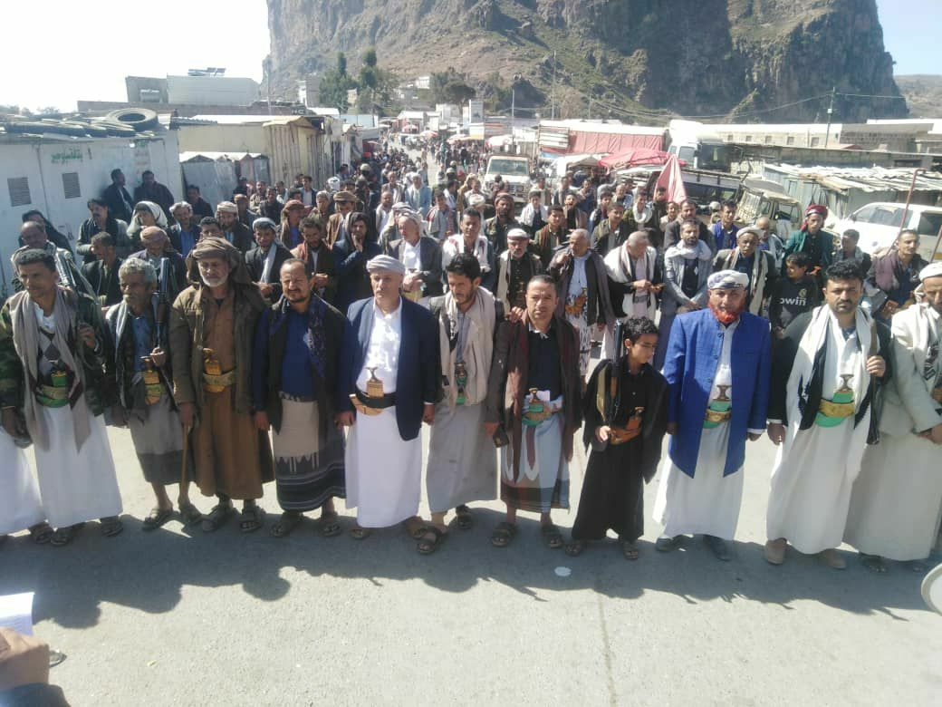 وعبر المشاكون في المسيرات التي تقدمها مدير عام مديرية عتمة المهندس عبدالمؤمن الجرموزي ومسؤول التعبئة العامة مطهر المحاقري وقيادات السلطة المحلية والتنفيذية والتعبوية والأمنية والشخصيات الإجتماعية عن الفخر والإعتزاز بمواقف قائد الثورة السيد عبدالملك بدر الدين الحوثي والترحيب ببيانه والعمل بموجبه في تعزيز الوعي بالأهداف الحقيقية للأعداء والمسؤولية الدينية في التصدي لطغيانهم.