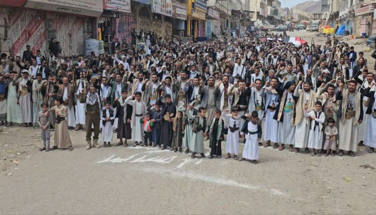 مسيرات مُتعدّدة بمديرية جبل الشرق بذمار تحت “تلبيةً ونصرةً للشعب الفلسطيني .. ثابتون وجاهزون للجولة القادمة”