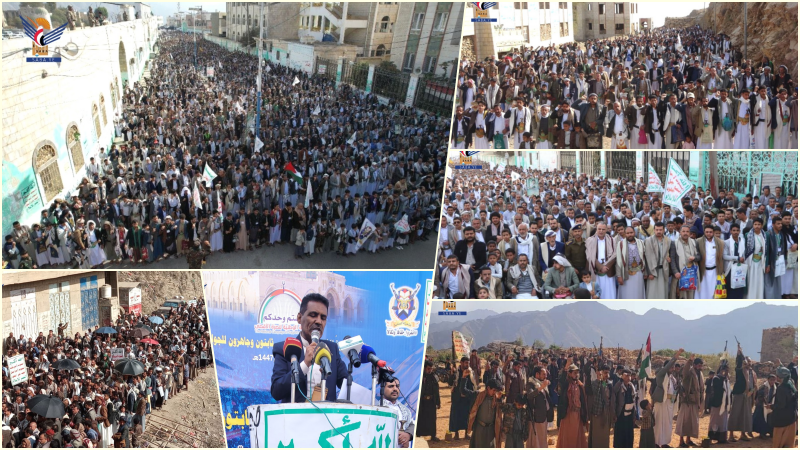 302 مسيرة حاشدة في ساحات حجة نصرةً للشعب الفلسطيني واستعدادا لمواجهة الأعداء