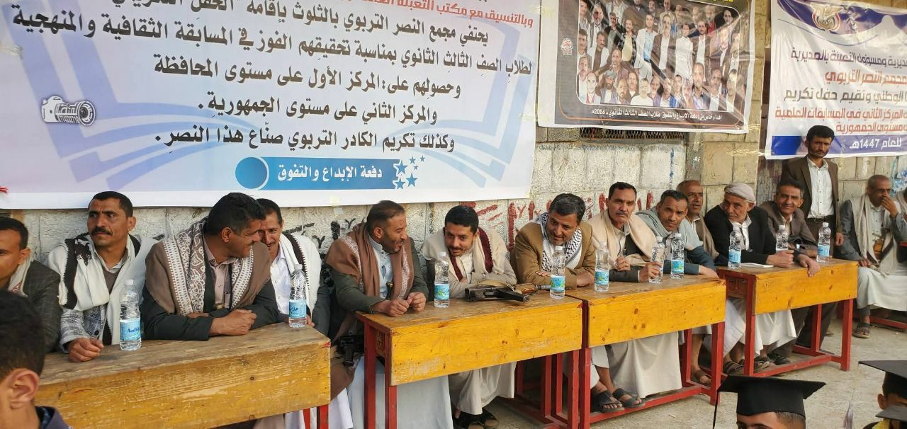 نظم مكتب التربية والتعليم في مديرية عتمة محافظة ذمار اليوم حفلا لتكريم طلاب مجمع النصر التربوي بالثلوث المبرزين في فعاليات المسابقات المنهجية والعلمية للعام الدراسي 2025-2026م