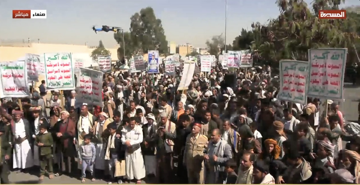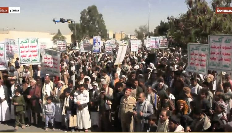 صنعاء تُحيي ذكرى 11 فبراير بمسيرة حاشدة أمام السفارة الأمريكية تأكيداً لرفض الوصاية