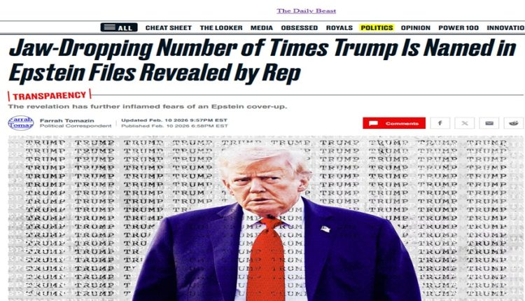 صرح النائب الديمقراطي “جيمي راسكين” لوسائل الإعلام بأن اسم الرئيس دونالد ترامب ظهر أكثر من مليون مرة في النسخ غير المعدلة من وثائق رجل الأعمال المتهم بجرائم جنسية والاتجار بالقاصرات، جيفري إبستين، وهو رقم يتجاوز بكثير الـ 5300 التي ظهرت في النسخ العلنية غير المنقحة، وفقًا لما جاء بموقع “ديلي بيست”.