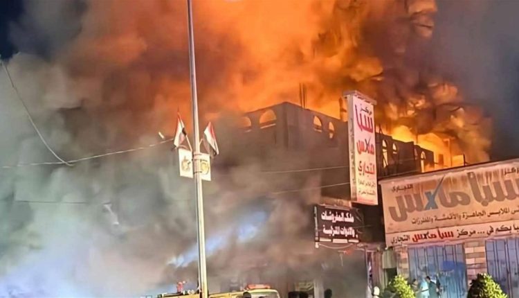وفاة شاب وإصابة 29 مواطنًا إثر حريق بمركز تجاري في مدينة مأرب المحتلة
