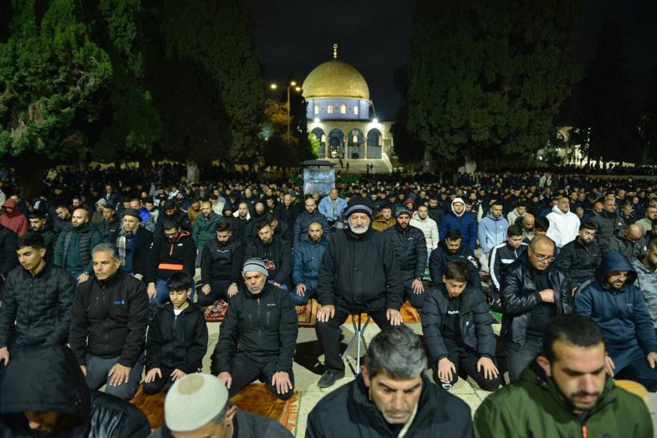 60 ألف مصلٍّ يؤدون صلاة العشاء في المسجد الأقصى المبارك