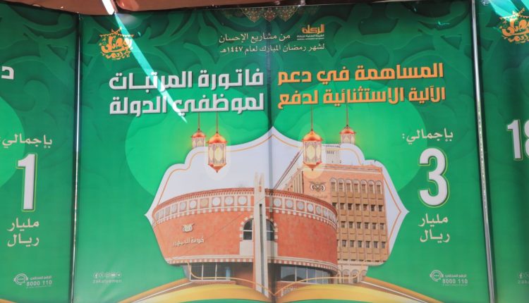 وأشار أبو نشطان إلى أن المجال الثاني من مشاريع الإحسان تضمن التعزيزات المركزية منها دعم الآلية الاستثنائية لدفع فاتورة المرتبات لموظفي الدولة بثلاثة مليارات ريال، ودعم سبيل الله بستة مليارات ريال، ودعم المراكز العلمية والجامعات وأكاديميات العلوم الشرعية بمليار ريال، ودعم المستشفى الجمهوري بالأمانة لتقديم الخدمات العلاجية المجانية للفقراء بإجمالي 900 مليون ريال.