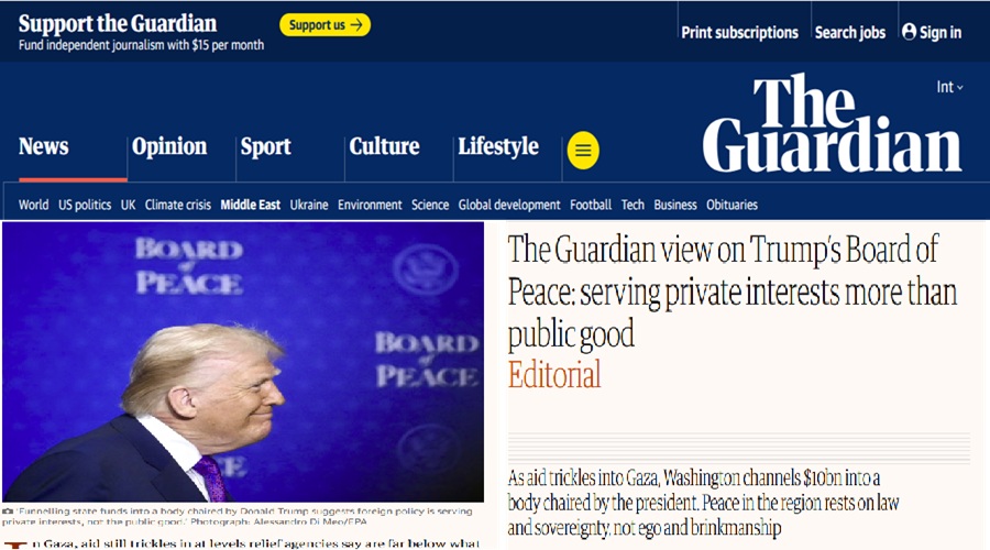 في هذا السياق، صحيفة “الغارديان” البريطانية، في افتتاحيتها، أنّ إعلان واشنطن تحويل 10 مليارات دولار إلى “مجلس السلام” الذي شكّله دونالد ترامب، يبدو صعب التوفيق مع الواقع الميداني؛ إذ يزداد الأمر سوءًا حين نعلم أن الولايات المتحدة سدّدت جزءًا ضئيلاً فقط من متأخراتها للأمم المتحدة: “160 مليون دولار من أصل أكثر من 4 مليارات مستحقة”.
